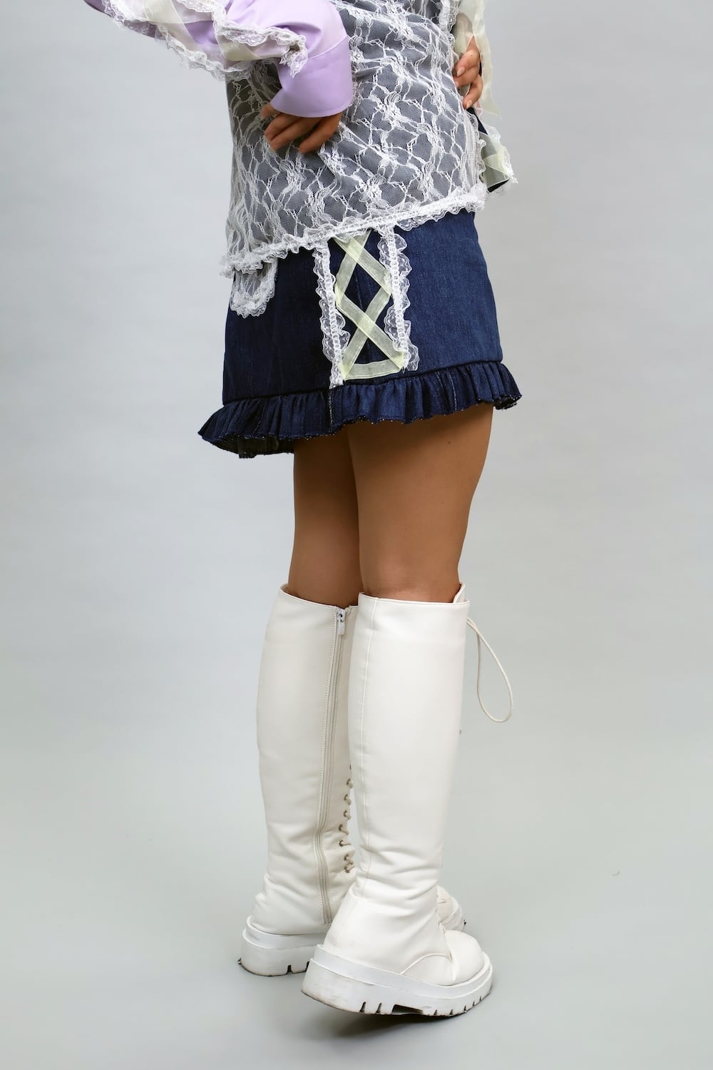# 02006 サイドリボンデニムミニスカート:サイドリボンがポイントデニムミニスカート
