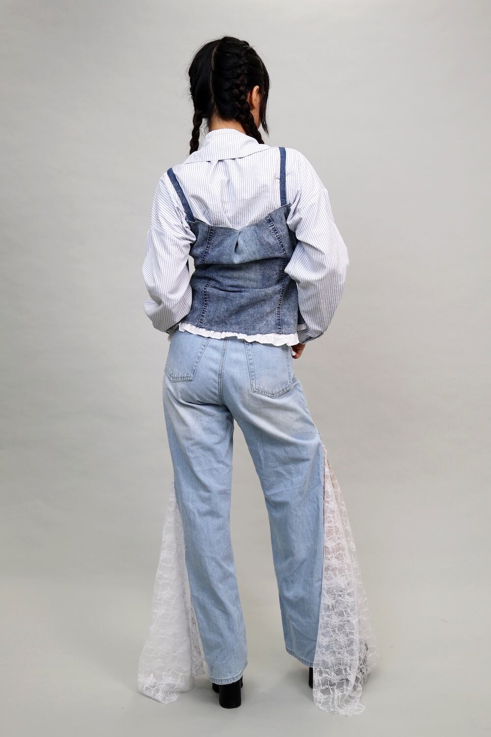 # 02009 フリルデニムビスチェ:ウエストが絞られていてシルエットが綺麗!