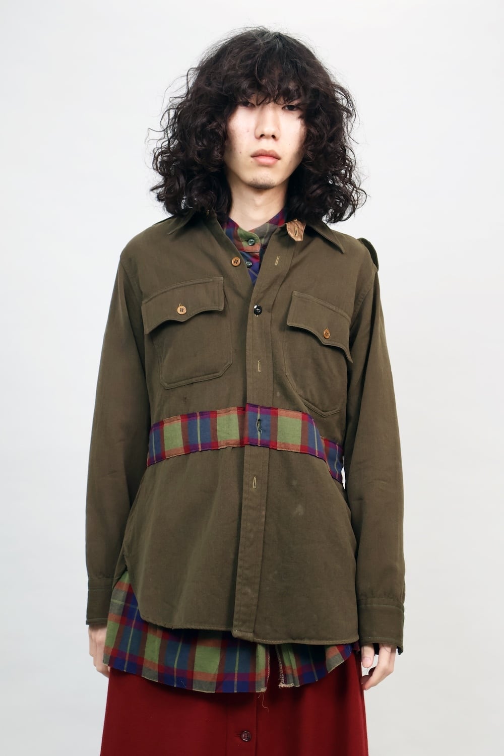 08001 チェック切り返しミリタリージャケット:ミリタリージャケットにワンピースの生地を縫い付けました!
